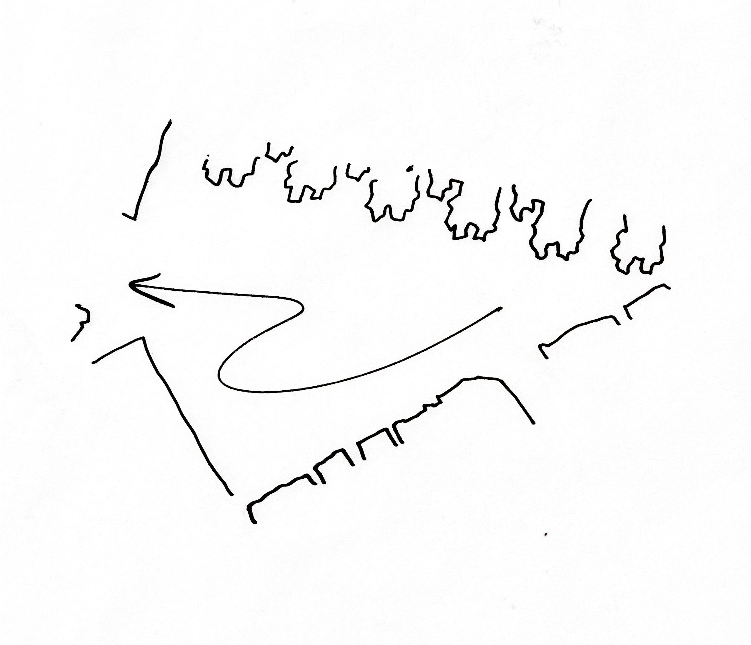 A “breathing” concept is formed in response to the needs of the neighbors Circulaton Napkin Sketch. Zig-zag circulation creates interesting moment in the center