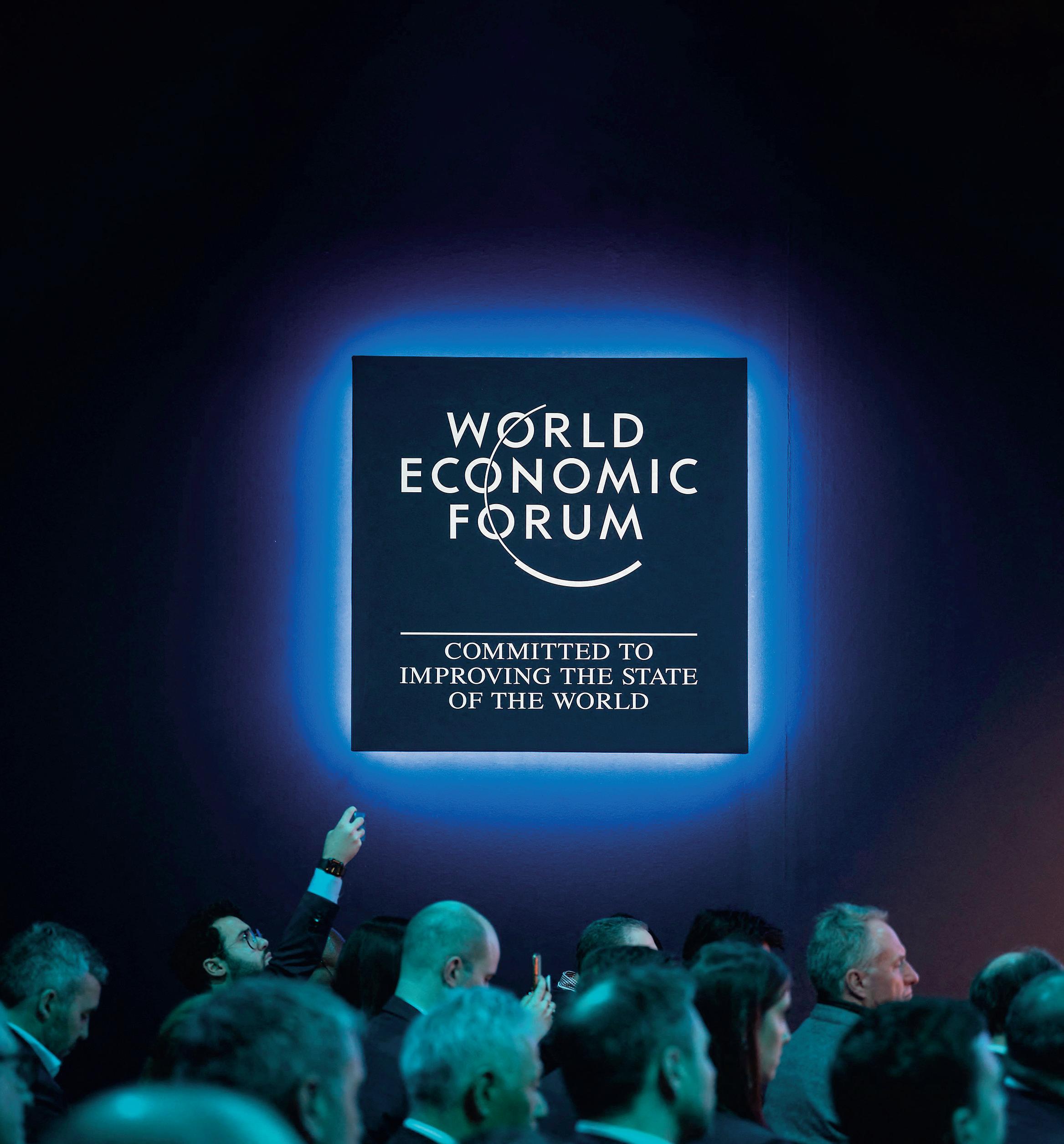 Participants attend a session of the World Economic Forum annual meeting in Davos, Switzerland, on Jan. 17.