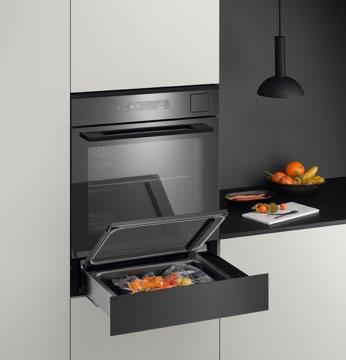 Zum Profi Steamer mit SousVide-Funktion bietet Electrolux ein eingebautes Vakuumiergerät an, welches direkt unterhalb des Backofens Platz findet. Das Vakuumieren von Lebensmitteln ist nicht nur beim Kochen Trumpf: Es eignet sich ideal zum Vorbereiten von Gefriergut, zur Konservierung oder zur Aufbewahrung von Esswaren im Allgemeinen.