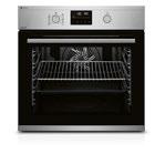 Con sistema di riscaldamento convenzionale/ grill/aria calda. Display LED. Selettori comandi a scomparsa. Vano cottura da 71 litri. Griglia reclinabile. Smaltatura Swiss Clean. A/L/P: 59,4/59,6/56,7 cm (EURO).