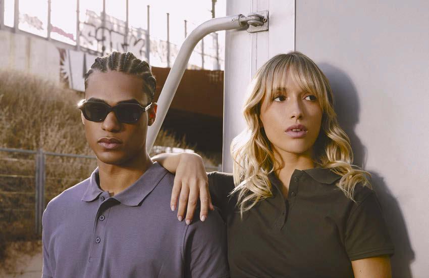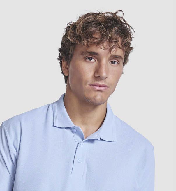 60% cotton / 40% polyester, piqué knit. Colour: 190 gsm. White: 220 gsm.