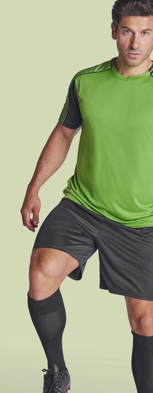 Short-sleeve t-shirt with double layer crew neck in elastane, made in tubular fabric for adults. Side seams in kids sizes. Reinforced covered seams in collar.