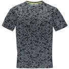 Short-sleeve t-shirt in inclined heather fabric. Crew neck in the same fabric and covered seams from shoulder to shoulder to contrast. Interior anti-chafing seams and side seams trimmed with adornment. Bottom side slits and pattern of the back slightly longer than the front. Side seams.