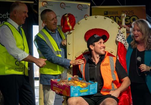 This last part of the year is always busy for the Brisbane Markets calendar. BML and Brismark hosted the annual Mango Auction in October, which was an extremely successful day. Congratulations to Chris Frame of the Standard Market Company, who was crowned the 2025 Mango King for his winning bid of $66,000 – the highest bid for quite some years. Thank you to our many wonderful sponsors that contributed to this event and helped support fundraising for the Lady Musgrave Trust and Redkite. Read more on page 28.