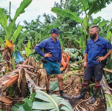 ABGC chair Stephen Lowe with grower Tony Alcock. Tony lost about 50% of his crop in the recent storm. IMAGE: Australian Banana Growers Council.