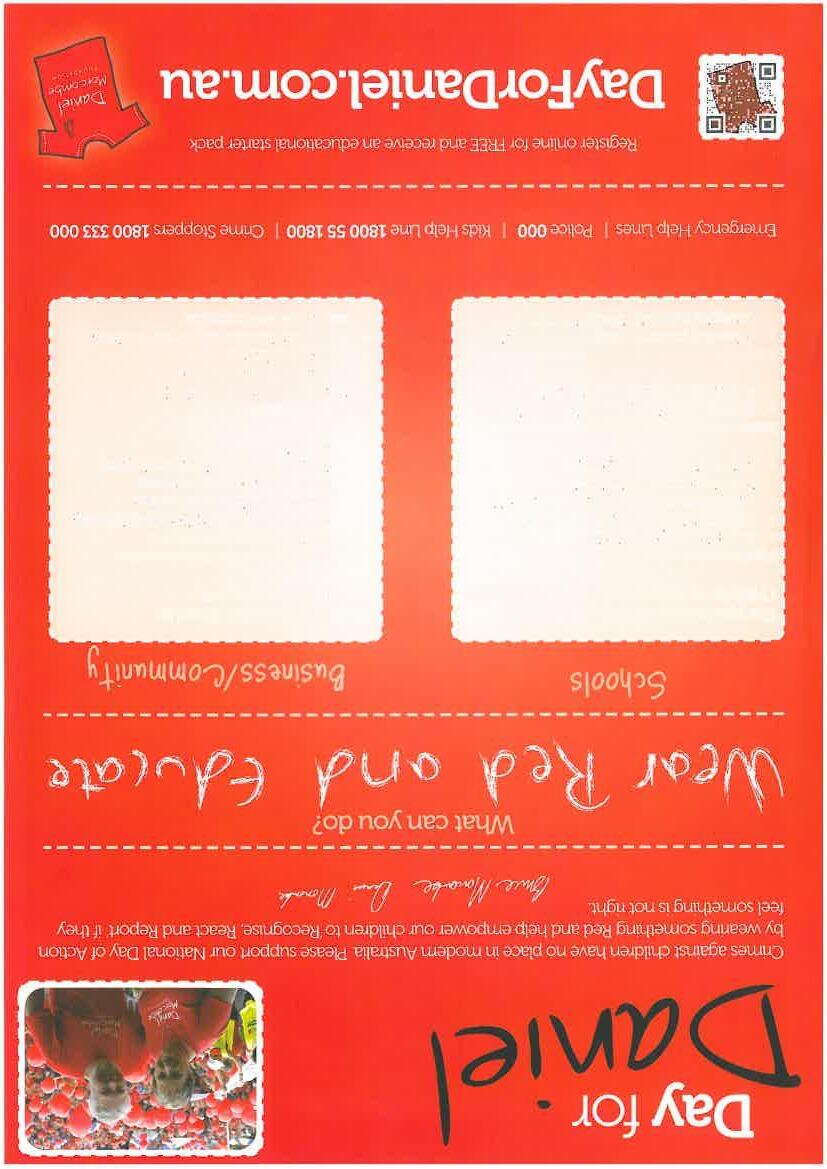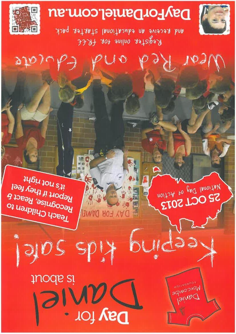 of the Daniel Morcombe Child Safety Curriculum. This is now available for all Queensland students from Prep to Year 9. The first lessons were delivered to our youngest students in Prep to Year 2 last year. This is a curriculum partnership between Education Queensland and the Daniel Morcombe Foundation that helps to improve children’s knowledge, skills and understanding about personal safety and awareness. Keep a look out for the Parent Guides that are included in the resources to explain what children will be learning and offer tips on reinforcing safety messages at home.