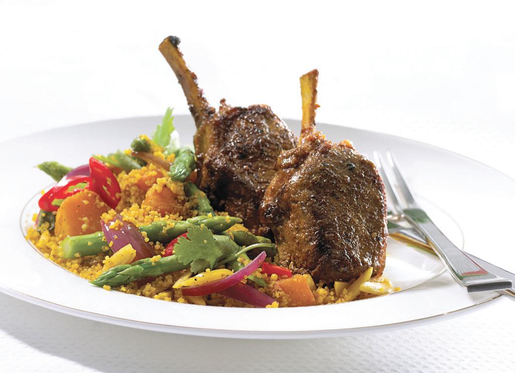 3. Remove from heat and fold coriander through. Serve lamb on bed of couscous with cooked asparagus.