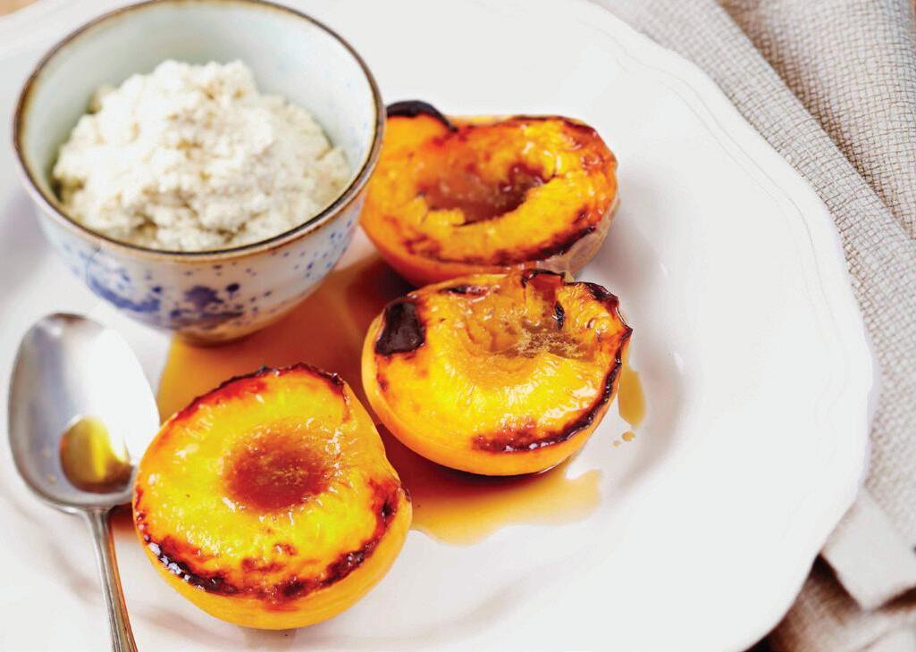 2. Mix together ricotta, sugar and vanilla. Serve immediately with the grilled peaches.