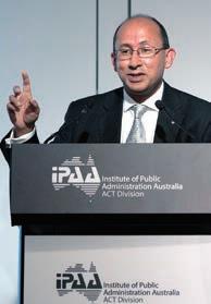 A transcript of today’s address will also be available on our IPAA ACT web site. I will take a little time to tell you about what’s on our agenda for IPAA ACT. We’ve taken the liberty of leaving a package of information on your chair. Hopefully most of you know all about us and what’s coming up but in that package is our Strategic Plan and a calendar of events. I want to highlight the nomination information for the Prime Minister’s Awards for Excellence in Public Sector Management; it’s not often we get to celebrate what we do as public servants and public administrators so please look out for that.