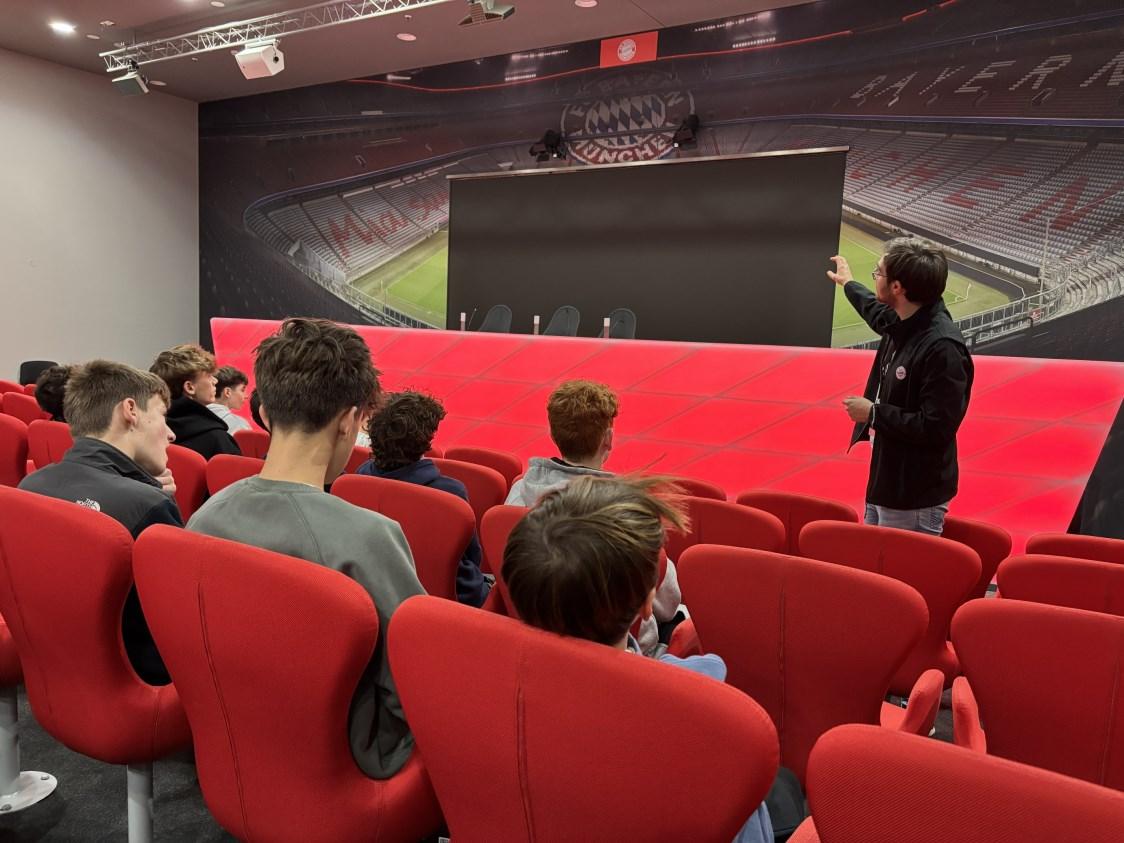 When we arrived, we headed towards the museum as we still had time ahead of our tour. It displayed the club's recent trophies and even had a small 1v1 football pitch inside. After agreeing on teams, many of us took part in a highly competitive 3-a-side tournament. Next, we headed into the club store where we spent the remainder of our time before the tour. We went to the other side of the stadium to meet our guide, and our first stop was unsurprisingly the inside of the stadium itself. The guide explained how the stadium was run and listed some fun facts about the history of the stadium. For example, the stadium was originally built for TSV 1860 Munich as well as Bayern. Our tour then led us to the dugouts, locker room and conference room which was highly absorbing.