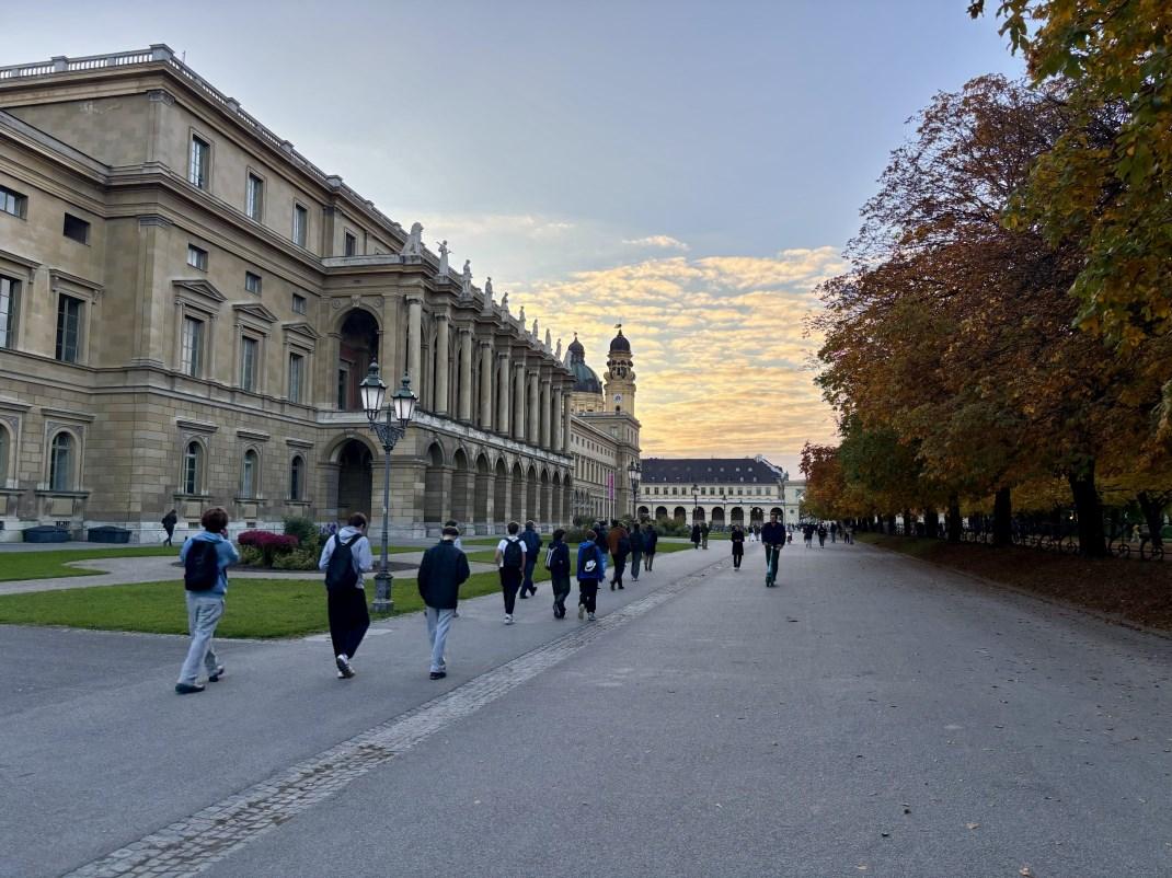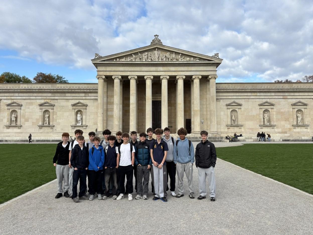 To start off the trip on Friday morning, we were up bright and early and in good spirits when we got to the airport. The flight went without delays and in the blink of an eye we had arrived in Munich. After a 45-minute bus ride to the accommodation we checked into our rooms and set off to the town. As we approached a set of Greek -inspired buildings, we were met by our tour guide in front of one of the buildings. The tour of the city was educational with a particular focus on Nazi Germany, therefore proving to be incredibly engaging. After a couple of hours of walking around the city, we returned to the hostel, ate dinner and went to sleep.