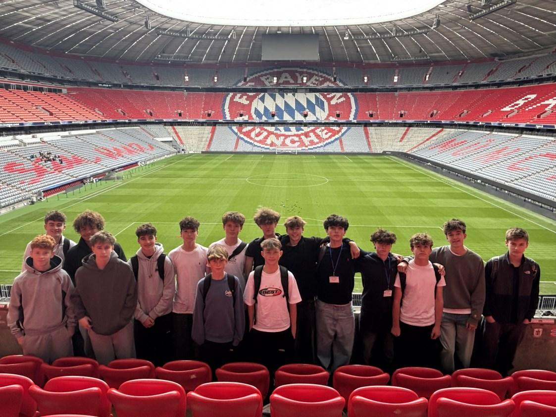 Unfortunately, Monday was our fourth and final day in Germany. The morning started with a slightly more relaxed breakfast before we began to pack our bags. Having taken the tram into the citycentre, we once again split into groups and explored a designated area of the city. Many of us took the opportunity to grab a bite to eat or buy some clothes from the countless shops in the area. At 12, we re-grouped at the New City Hall on Marienplatz and watched the glockenspiel show that took place above the square. It was then time to collect our bags from the accommodation and take a bus to the Allianz Arena.