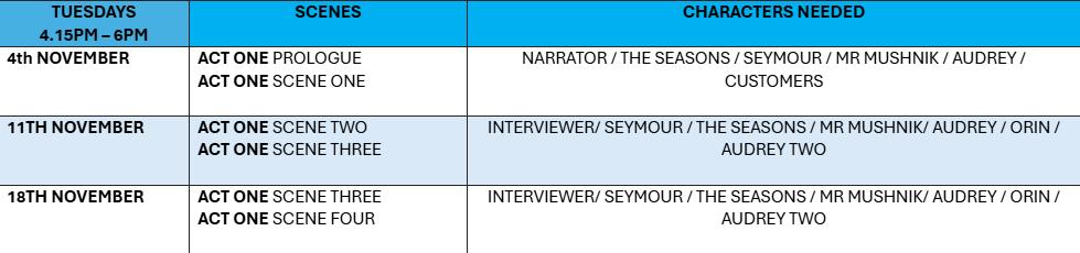 The new half term sees the start of rehearsals for this year’s senior production of Little Shop of Horrors. The first three weeks of rehearsals can be seen below.