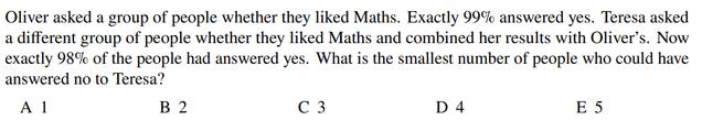 Now it is your turn! Are you good enough to join the ranks of our elite problem solvers? Here are some questions from this year's challenge (You may not use a calculator...!)