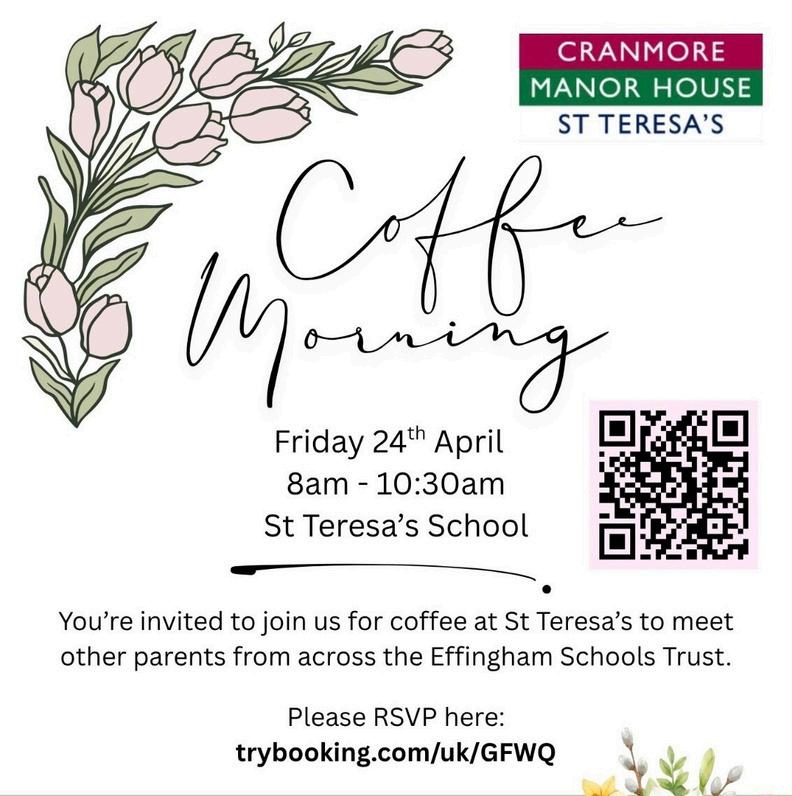 Cranmore, Manor House and St Teresa’s parents are invited to the Effingham Trust Parent’s Association Coffee Morning, see details below: