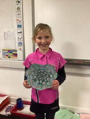 Year 5: Kitty N we have been working on an optical illusion piece and she dedicated three weeks to completing hers, showing great patience and skill.