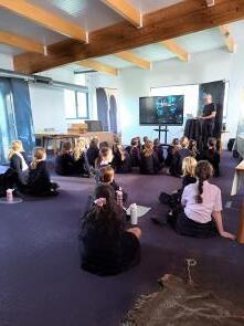 My thanks to Mr Field for organising transition pre-show drinks with our Year 6 parents last Friday ahead of the second evening performance of the Senior production of ‘Animal Farm’. It was lovely to spend time in a more social setting with some of our parents and girls – here are some of the girls pointing the way to next week’s beginning of Advent!