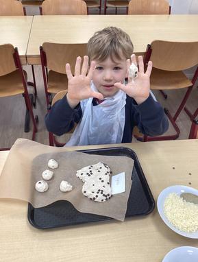 On Tuesday, Reception learned about the miracle of the feeding of the 5000. To bring the story to life, we visited the dining room to make our own bread with Harry, our Executive Chef Manager, and Emily, our Assistant Catering Manager The children worked brilliantly, kneading their dough with enthusiasm and carefully choosing their favourite toppings, including poppy seeds and cheese