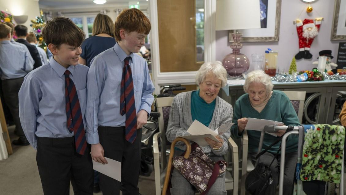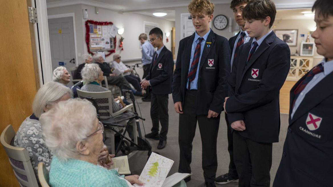 On the penultimate Friday of term, Miss Evans, seventeen choristers from the Senior Chamber Choir, and I visited Limegrove care home. Our young choristers entertained the residents and staff by singing carols and lively Christmas songs. After their performance, they mingled with the residents and handed out Christmas cards, which had been made and written by Year 7 pupils. This was a wonderful opportunity for these pupils to demonstrate their caring and compassionate side. I was so impressed by the social skills they displayed while chatting with the residents.