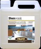 FAXE Stenvask er et universelt rengøringsmiddel til alle vaskbare overflader og genstande. God til at fjerne sæbe og snavs på f.eks. keramikog marmorfliser, sanitet, blandingsbatterier og emaljerede badekar.