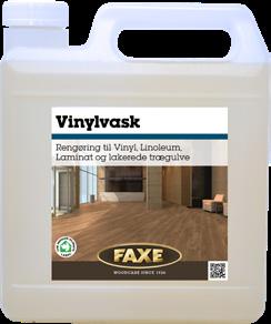 FAXE Vinylvask er et effektivt rengøringsmiddel speciel fremstillet til rengøring af vinyl, linoleum, laminat og lakerede gulve. Er også særdeles effektiv til rengøring af melaminoverflader, PUR-forstærkende vinyler, polish- og voksbehandlende vinyler, lakerede overflader samt polish/voksbehandlede gulve.