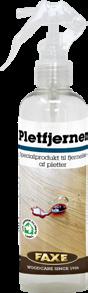 FAXE Pletfjerner fjerner skånsomt pletter som fedt, blod, kaffe, te og rødvin på både ubehandlet, sæbebehandlet, vokset, lakeret og olieret træ. FAXE Pletfjerner er uden opløsningsmidler, duft eller farve.