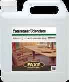 FAXE Trærenser Udendørs fjerner snavs, belægning og mindre spor af forvitring ved ubehandlede eller olierede træoverflader. FAXE Trærenser Udendørs anvendes til den regelmæssige rengøring og før en efterbehandling med FAXE Udendørs Olier.
