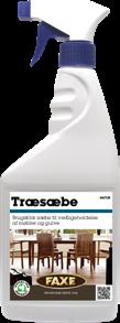 FAXE Træsæbe er en speciel fremstillet kvalitetssæbe, der er klar til brug. FAXE Træsæbe er udviklet til hurtigt at mætte træets porer og giver en god beskyttelse mod indtrængning af snavs og spildte væsker f.eks. kaffe, rødvin m.m. FAXE Træsæbe er nem at spraye ud på overfladen.