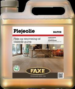 FAXE Oliepleje anvendes især på trægulve, der er fabriksolierede eller efterbehandlet med FAXE Træolie eller FAXE Prestige Olie PLUS. Ved regelmæssig anvendelse sikrer den, at gulvet bevarer sit flotte udseende og bliver mere modstandsdygtigt over for daglig slid.