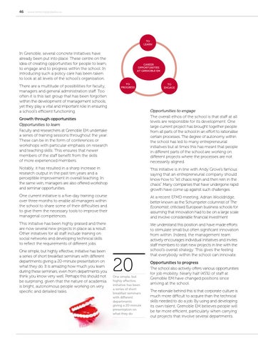 Opportunities to progress The school also actively offers various opportunities for job mobility. Nearly half (45%) of staff at Grenoble EM have changed positions since arriving at the school.