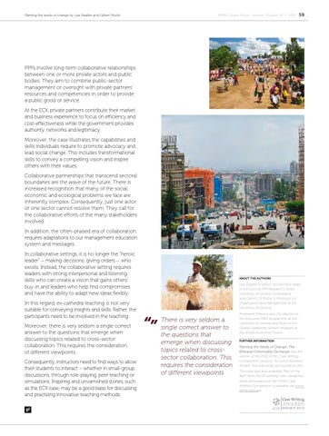 There is very seldom a single correct answer to the questions that emerge when discussing topics related to crosssector collaboration. This requires the consideration of different viewpoints