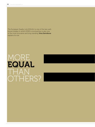 The European Quality Link (EQUAL) is one of the less wellknown bodies in which EFMD is involved but is also one of the most innovative and long-standing. Irina Sennikova explains its role