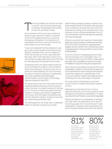 81% 80% Over 81% of respondents agreed that business and business education needs to be about more than just maximising shareholder value