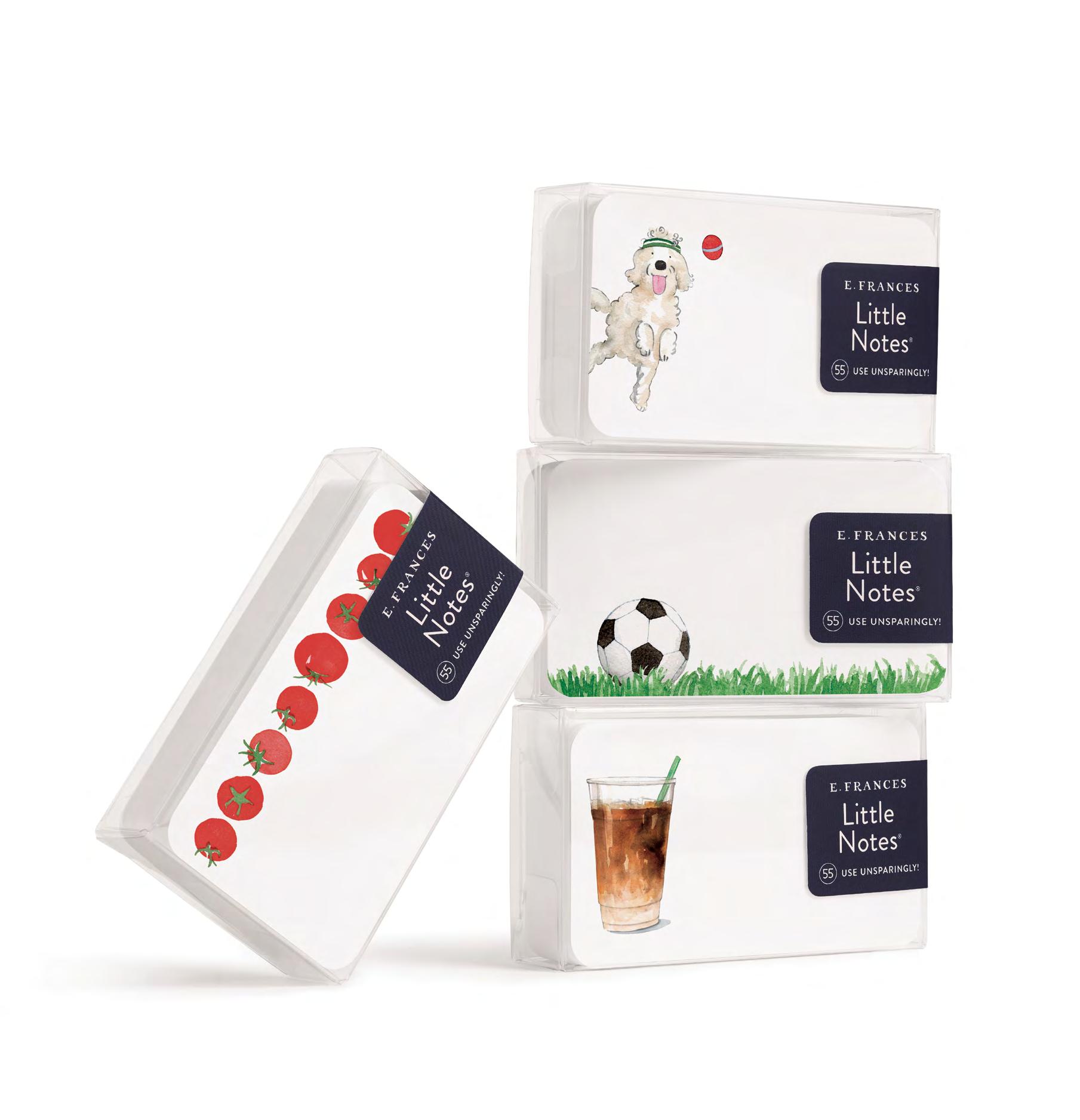 All of our products must be displayed and sold in their original packaging. Little Notes® and boxed sets may not be broken up. All online stores must tag and credit E. Frances Paper on any products listed for sale. Please let us know if you have questions about this.