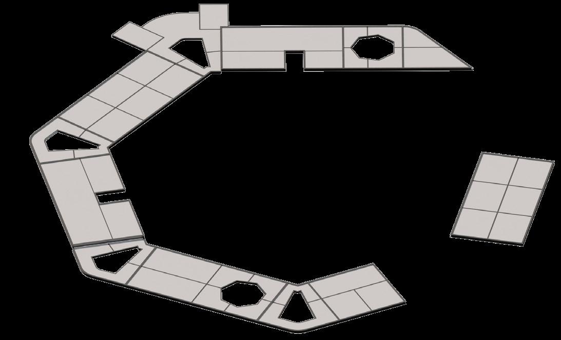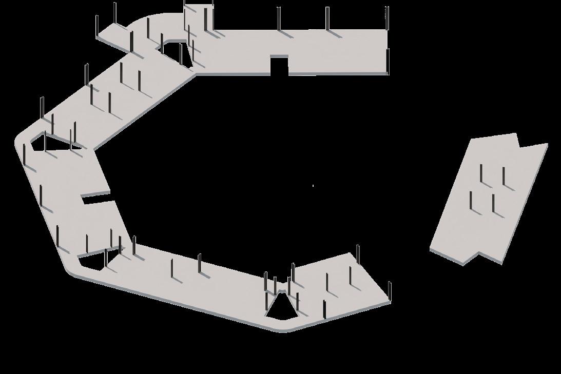 Se diseño con la intención de crear un muro de carga sin obstruir las vistas hacia el centro de la colmena.