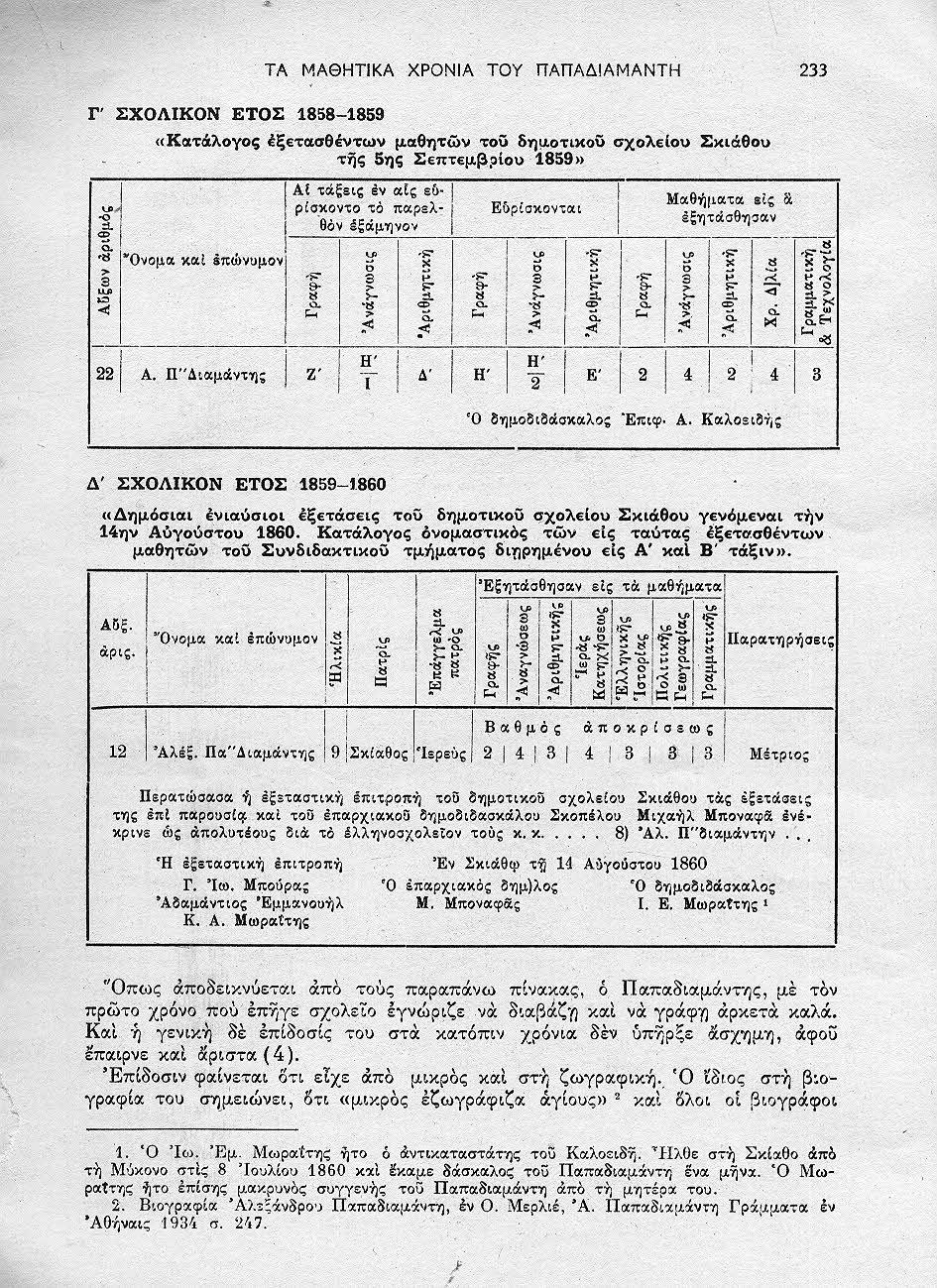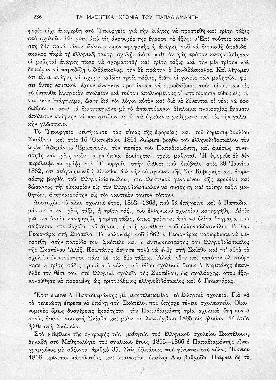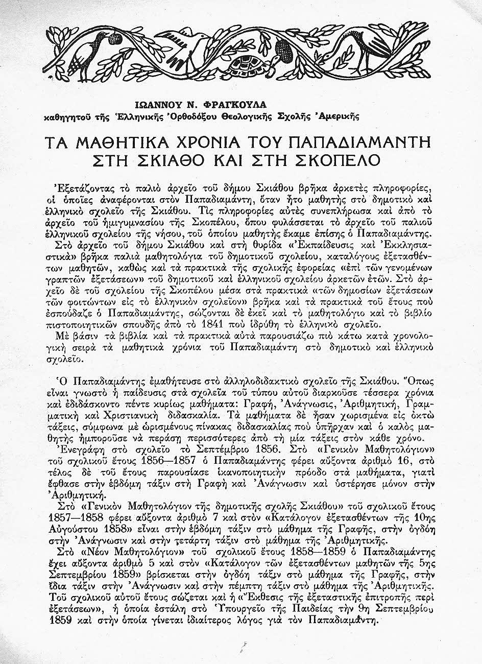 Παπαδιαμάντης μαθητικά στη Σκιάθο Σκόπελο