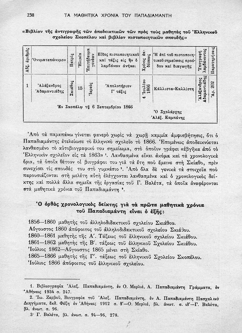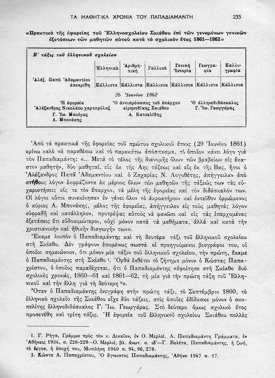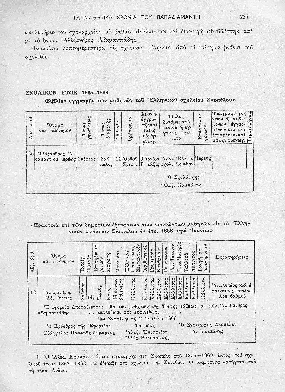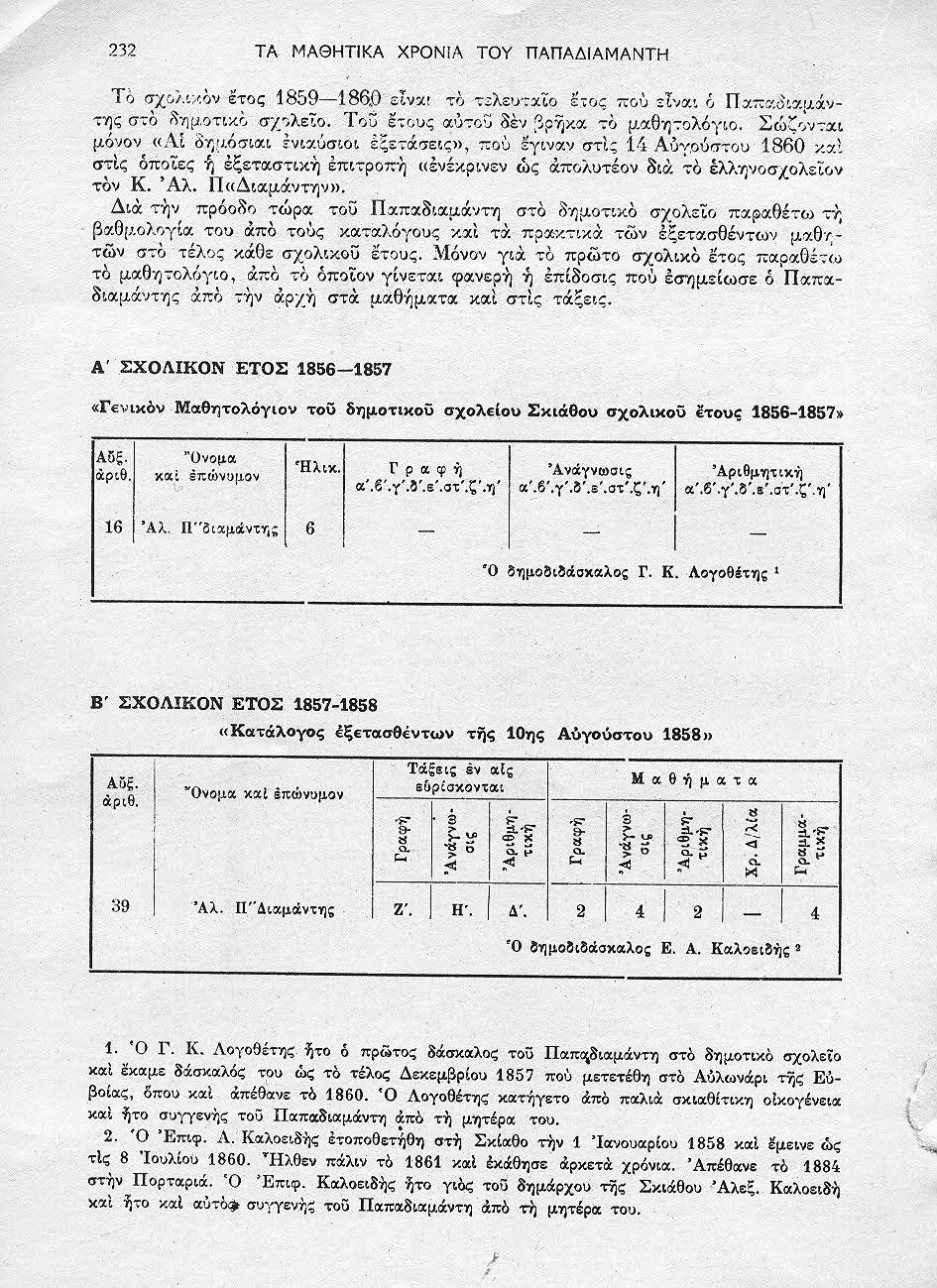 Παπαδιαμάντης μαθητικά στη Σκιάθο Σκόπελο