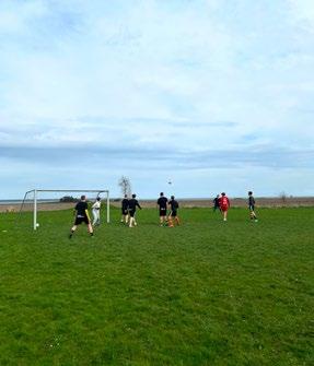 indebar at øve kast og tacklinger, skulle vi spille kamp. Der blev gået til den, og banen var fyldt med latter, smil og kampgejst (og til sidst meget mudret sko).