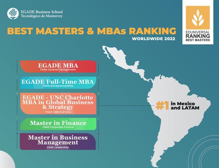 escuela de negocios en México y América Latina por 15º año consecutivo - Business Schools Ranking de Eduniversal 2022. Líder de posgrados en negocios en México y América Latina - Best Masters & MBAs 2022 de Eduniversal.