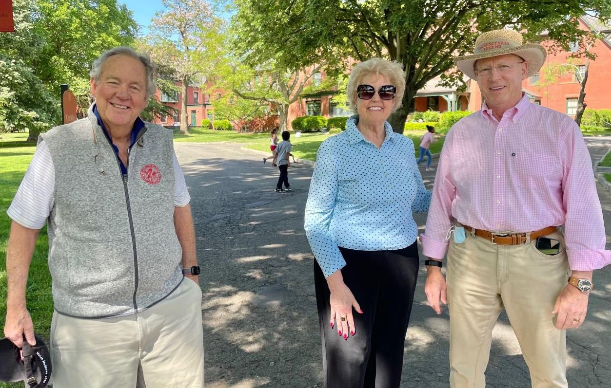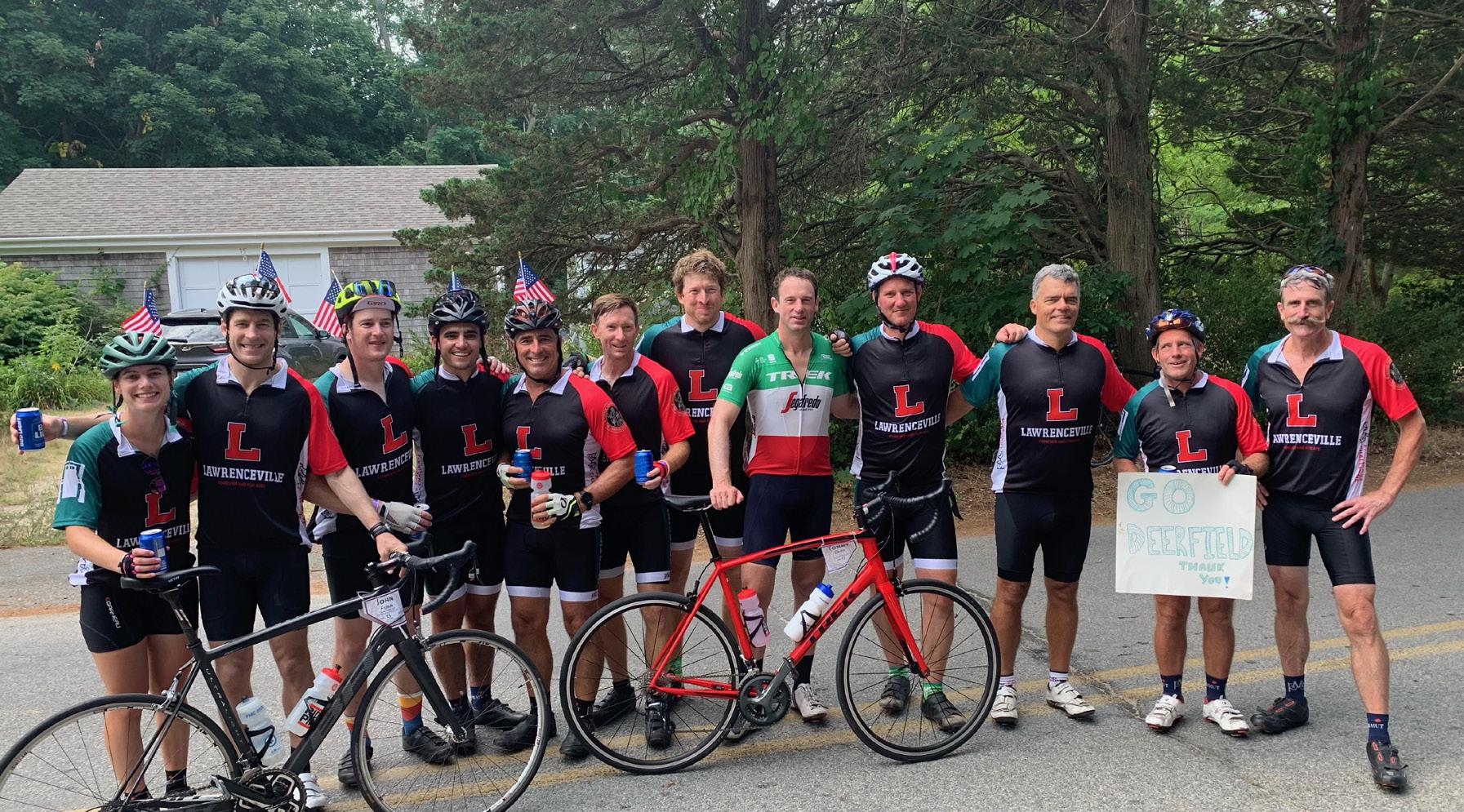 For the third year, Head of School Steve Murray H’54 ’55 ’65 ’16 P’16 ’21 (right) inflated his tires, zipped up his jersey, and hit the road for the annual Pan-Mass Challenge, a bike-a-thon that raises money for DanaFarber Cancer Institute in Boston. Riding more than 200 miles on August 6 and 7, Murray’s team of friends and former colleagues from Deerfield Academy raised over $80,000 this year alone to support cancer research at Dana-Farber. It is the largest single athletic fundraiser in the United States, and 100 percent of every dollar raised goes to the Institute. On the last day of the ride, the group proudly sported custom jerseys with Lawrenceville’s Big Red “L” on the front and “Deerfield” on the back. n