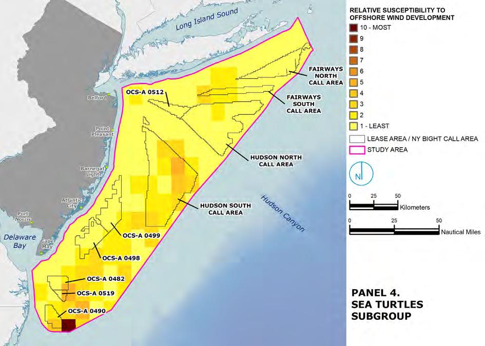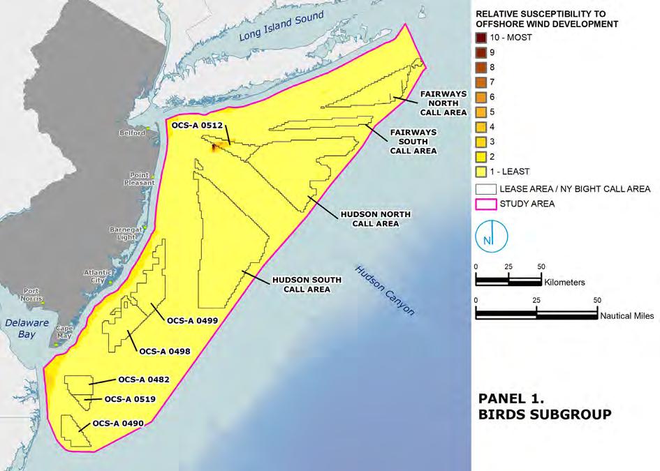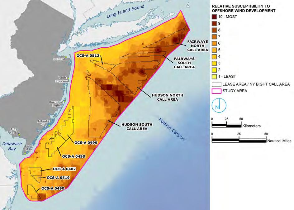 • Prioritize development in areas that are less sensitive to impacts from offshore wind development
