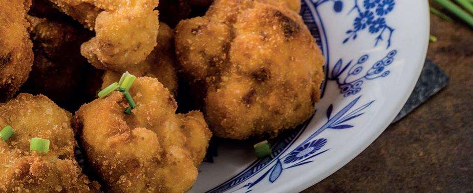 3. Ha kihűlt, az összes karfiolrózsát lisztbe, majd tejjel elhabart tojásba, végül zsemlemorzsába forgatjuk. Ezután bő, forró olajban kisütjük mindet. Főtt rizs, vegyes saláta, sült krumpli illik mellé.