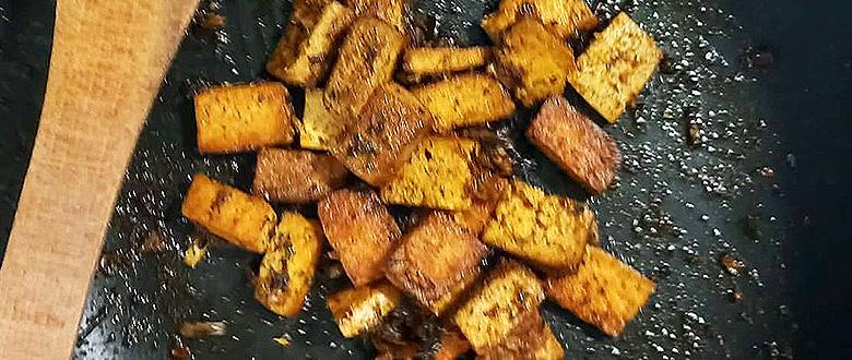 3. Közben, amit lehet, felszeletelünk és egy serpenyőben megsütjük. (A zöldsalátát ne!)