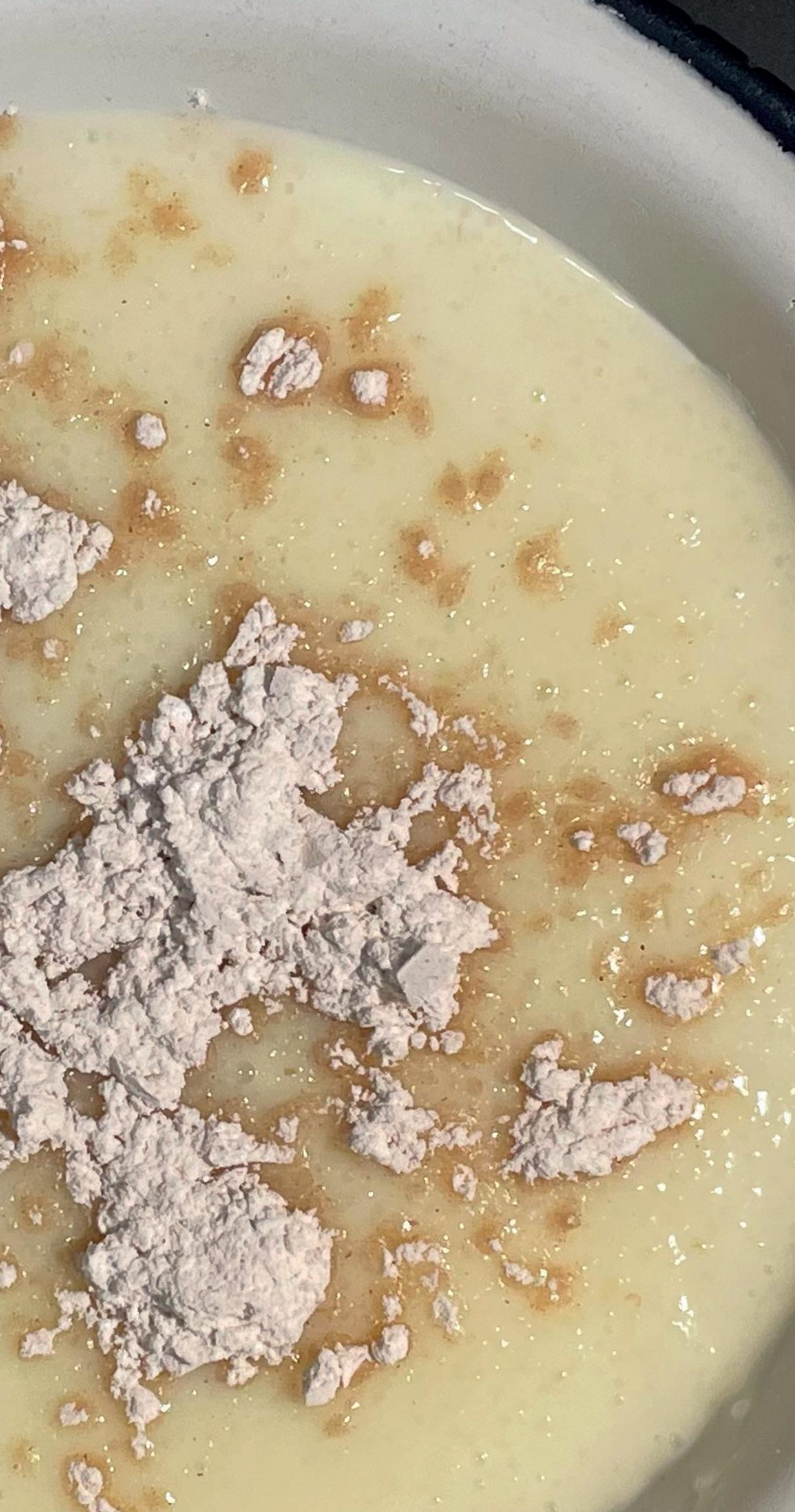 2. Annyi tejet használunk, hogy kb. fél centivel a száraz hozzávalók fölé érjen a fazékban.