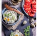 • teljes kiörlésű kenyérrel és főtt fürj- vagy hagyományos tojással tálaljuk