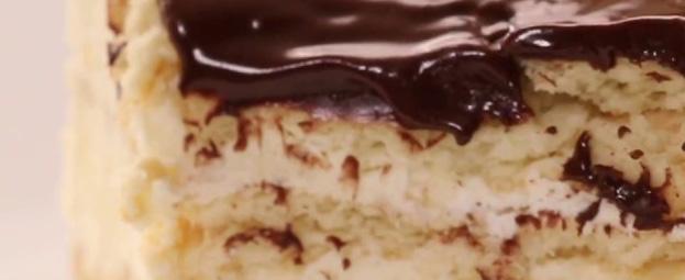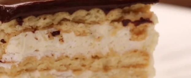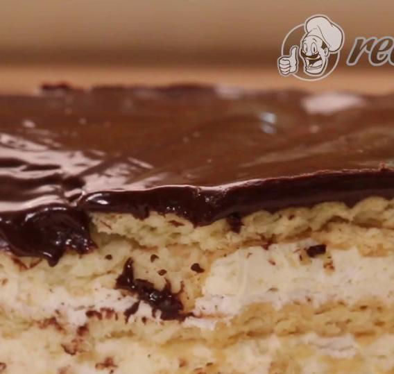 5. Ezt tegyük meg még kétszer, de úgy, hogy a legfelső réteg krém legyen, vékonyan a kekszek tetején.
