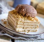 4. A torta első lapján kenjük el a szilvalekvárt, majd rakjunk rá a töltelékből. Ezután fedjük le a további lapokkal hasonló módon bekenve őket lekvárral és töltelékkel. Végül öntsük a csokimázat a tetejére.