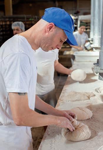 arbeiten in der Brotmanufak tur in Burgschleinitz. Einige pendeln aus Wien, die meisten kommen aus der Umgebung, wo Arbeitsplätze rar sind, sowie aus dem benachbarten Tschechien und der Slowakei. Es gibt aber auch Geflüchtete aus Syrien und Afghanistan, die hier Anstellung gefunden haben. Auf die Internationalität seines Teams ist Weghaupt stolz. Und darauf, dass er für die vielen Arbeitsschritte, die hier von Hand ausgeführt werden, fair zahlt.