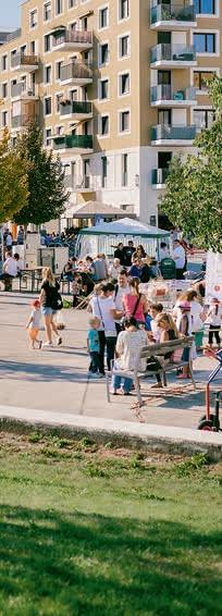 Mit seiner Idee eines zentralen Sees und einer Ringstraße rundherum konnte er sich 2007 schließlich im Wettbewerb durchsetzen, 2014 zogen die ersten BewohnerInnen ein. Heute leben knapp 10.000 Menschen in der Seestadt. Fertig ist das Stadterwei terungsgebiet aber noch lange nicht. Nicht nur, weil nach wie vor fast im Wochentakt Bauprojekte fertigge stellt werden. Auch das Lebensgefühl ist noch im Werden. Die Stärkung