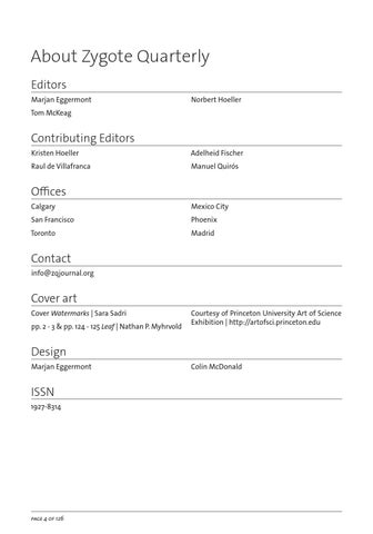 Cover art Cover Watermarks | Sara Sadri pp. 2 - 3 & pp. 124 - 125 Leaf | Nathan P. Myhrvold
